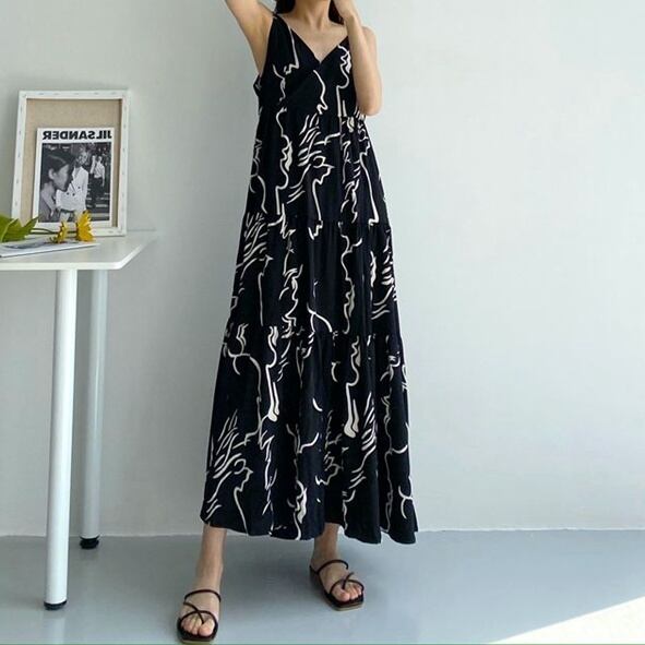 モノトーン キャミワンピース フレアスカート ロング丈 b-580 net220920