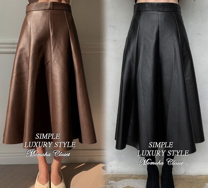 ふんわり可愛い レザー フレア スカート 全3色 nin220901