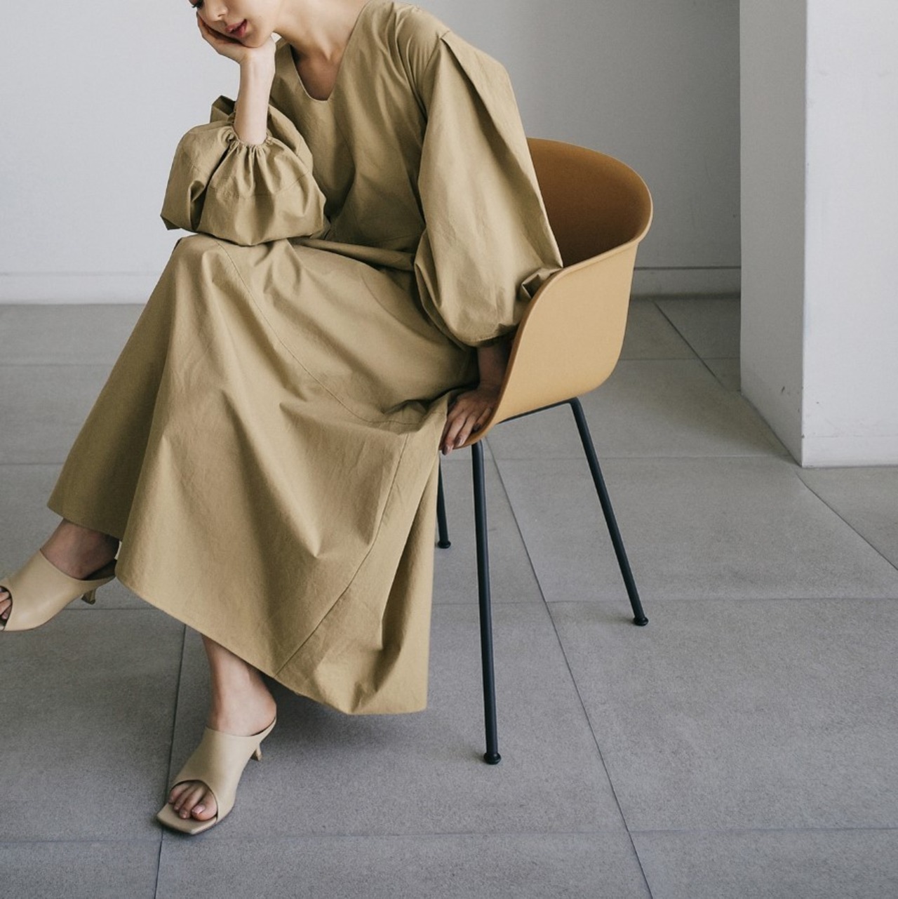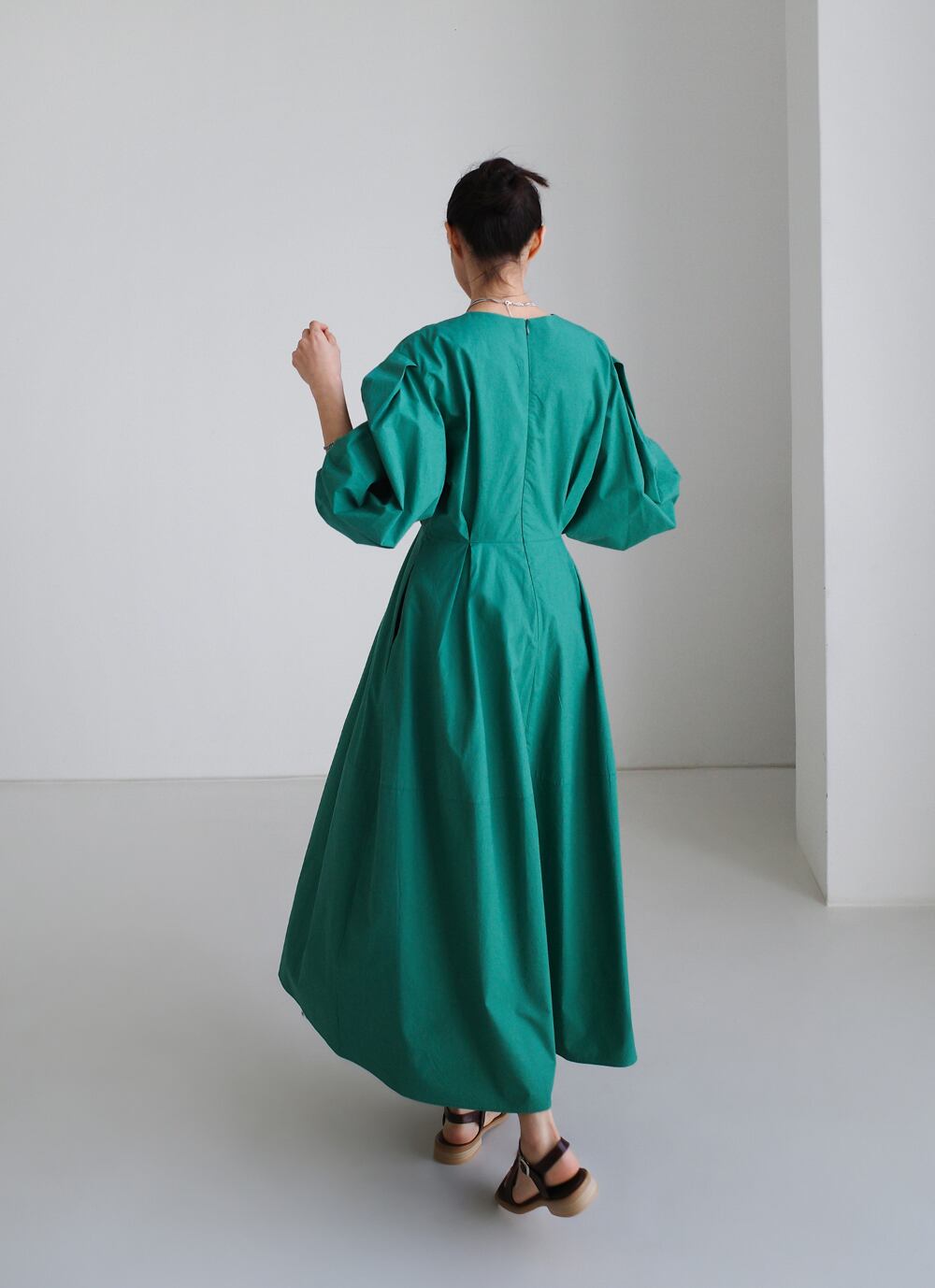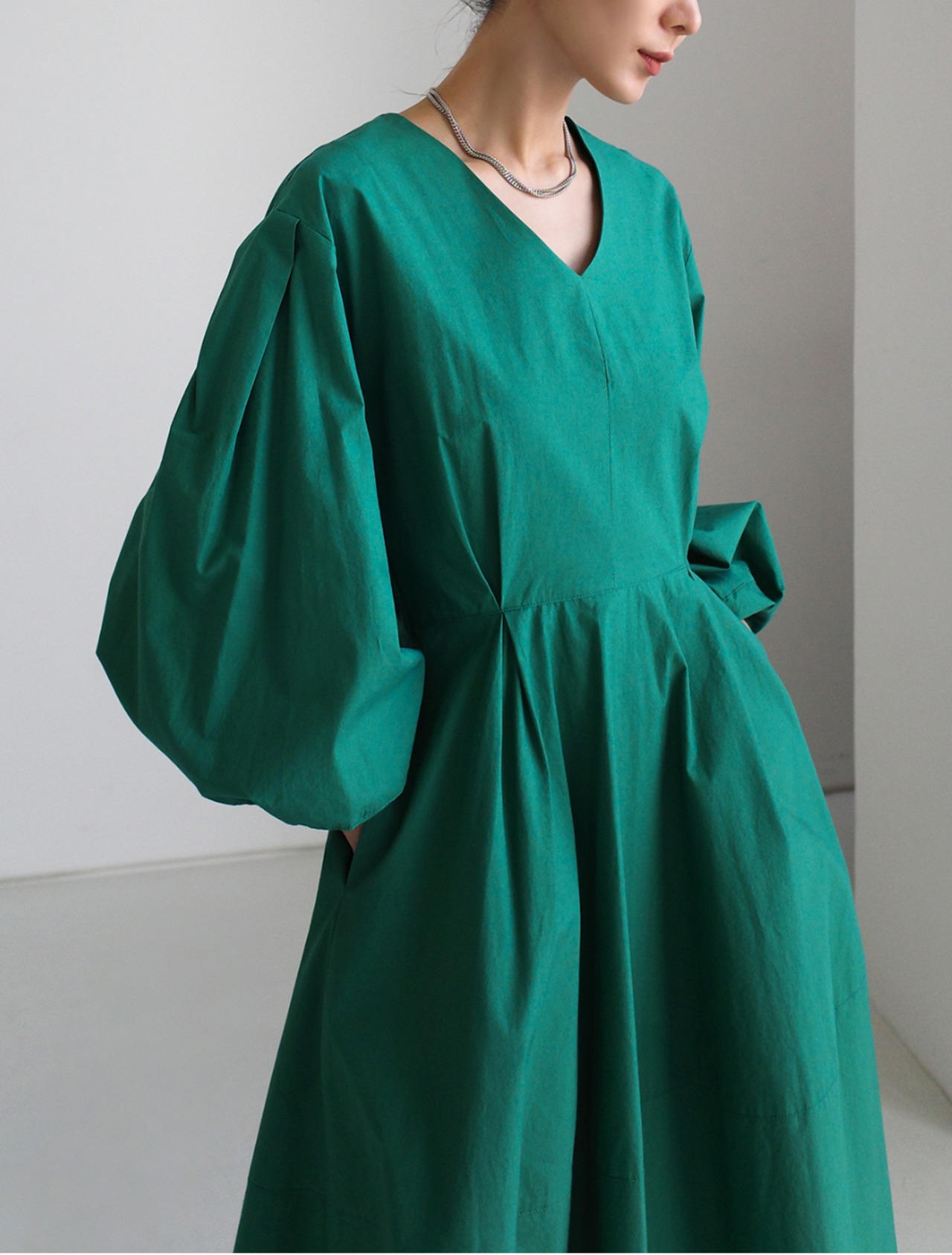 ワンピース ロング ボリューム袖 フレアスカート エレガント 4色 ymk220923