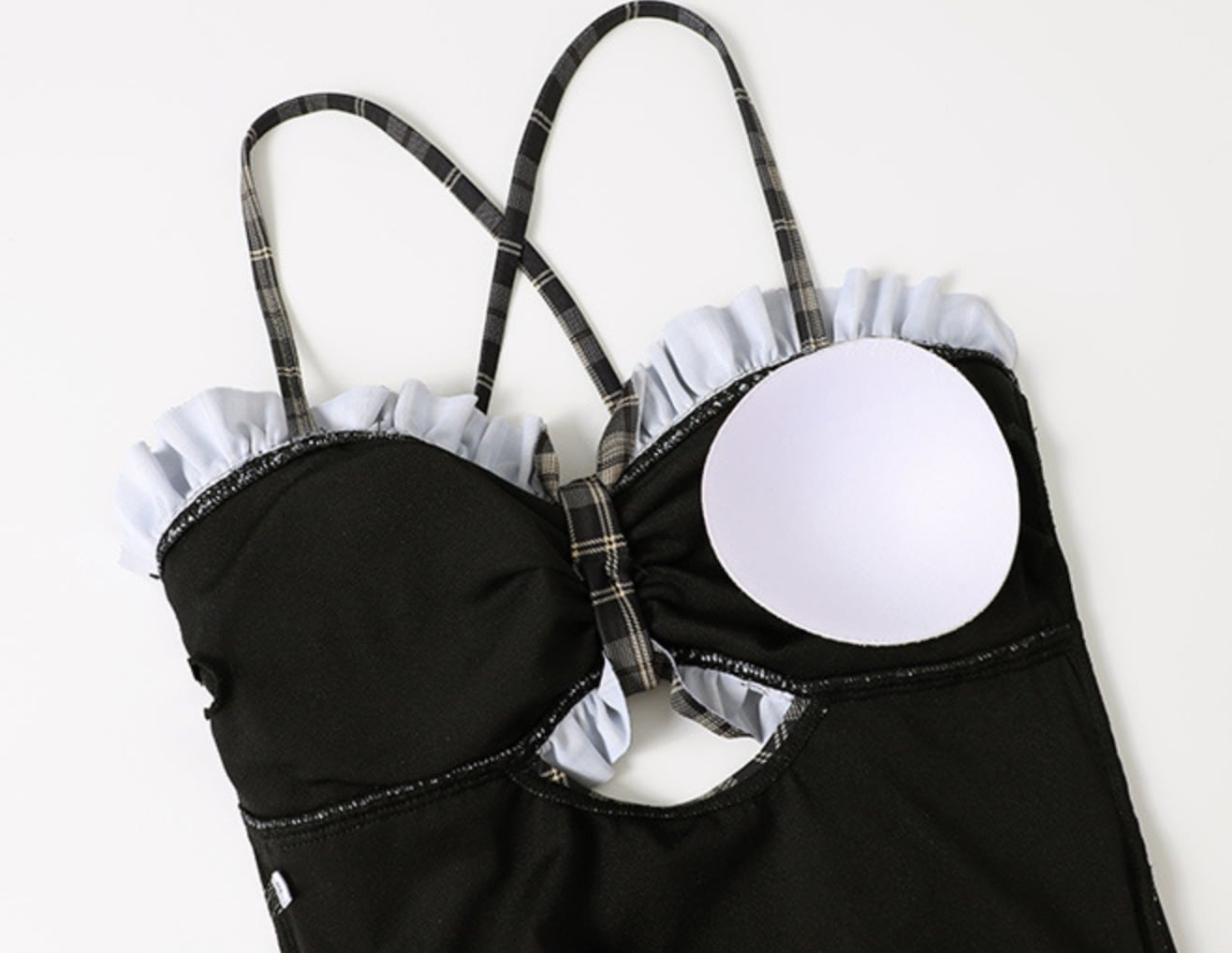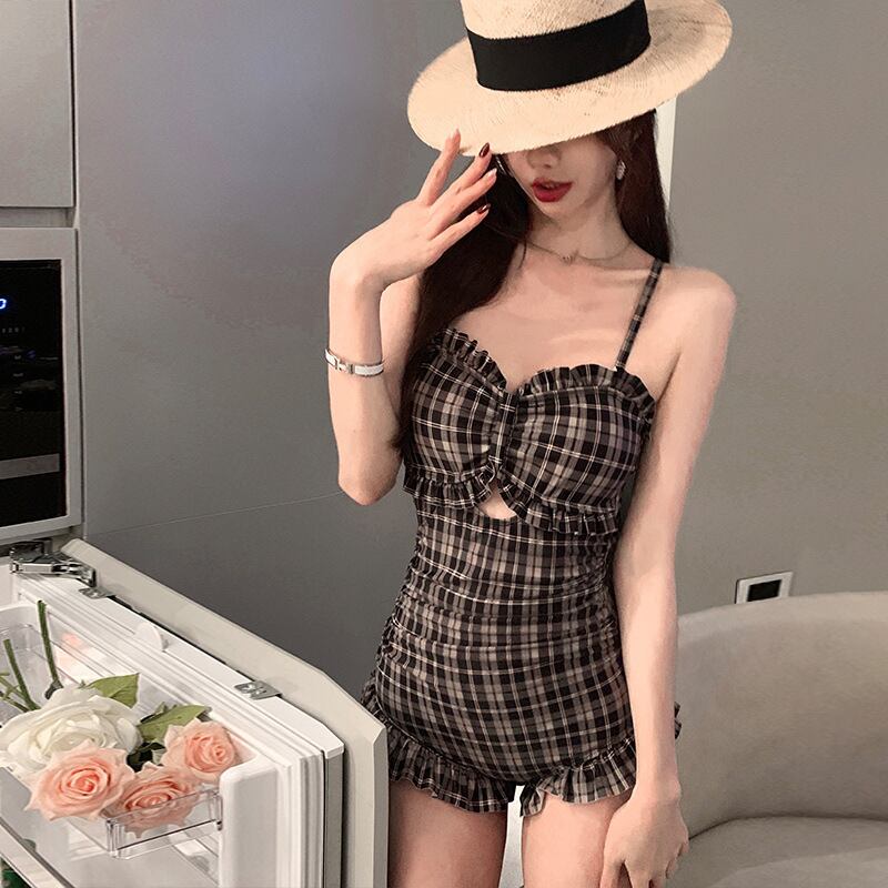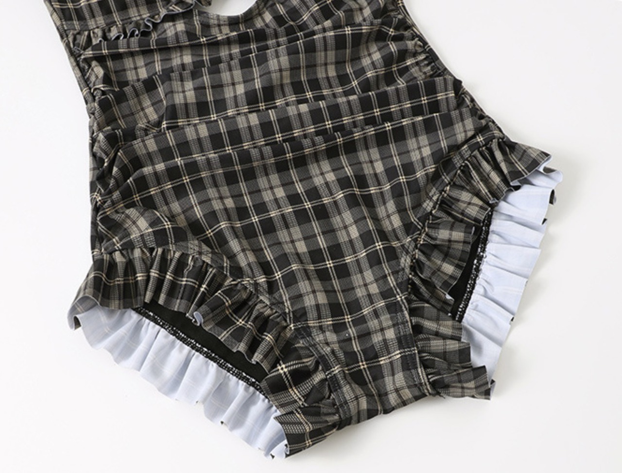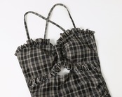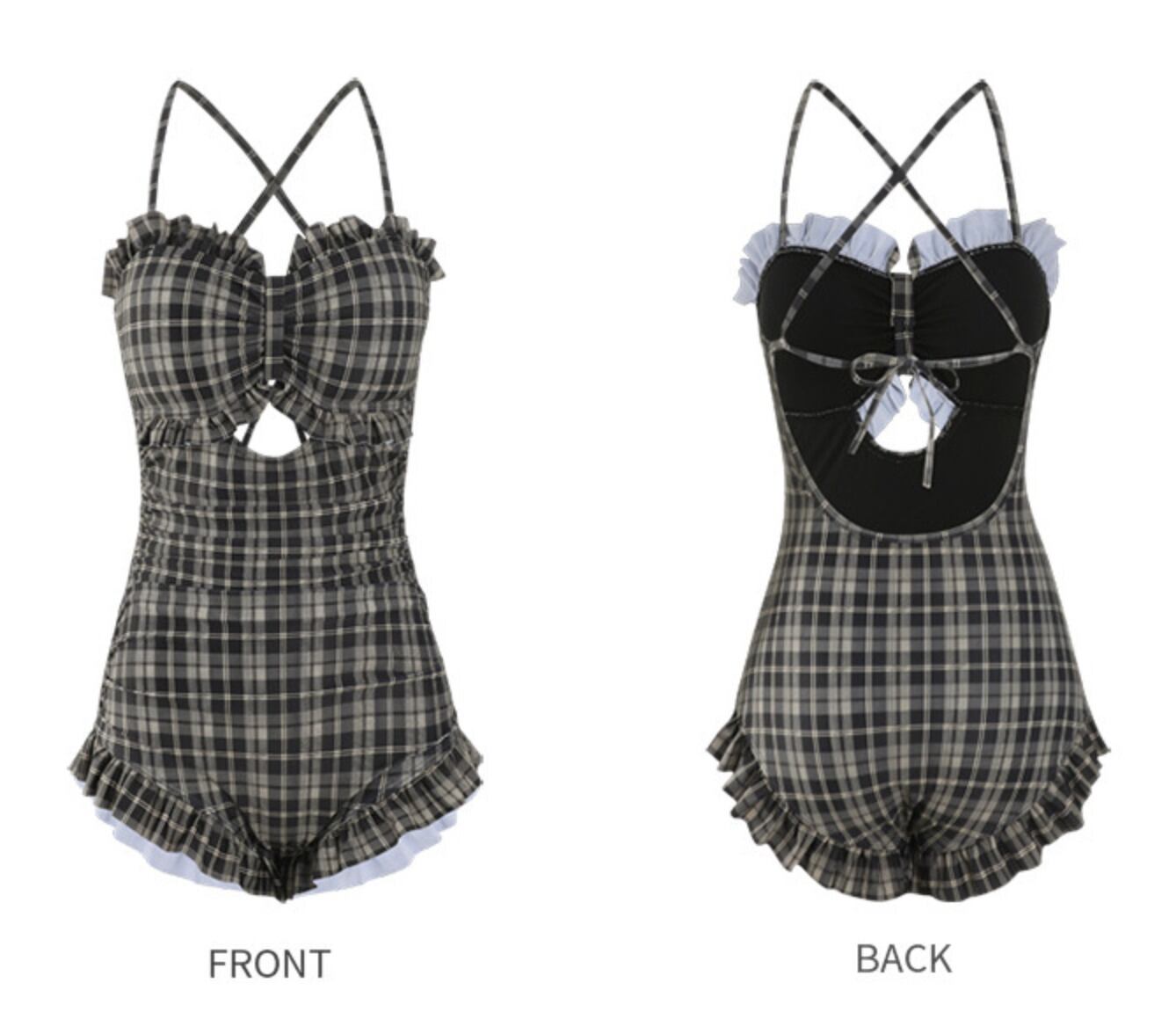 チェック柄 フリル クロスストラップ モノキニ ワンピース 水着 yyx220901