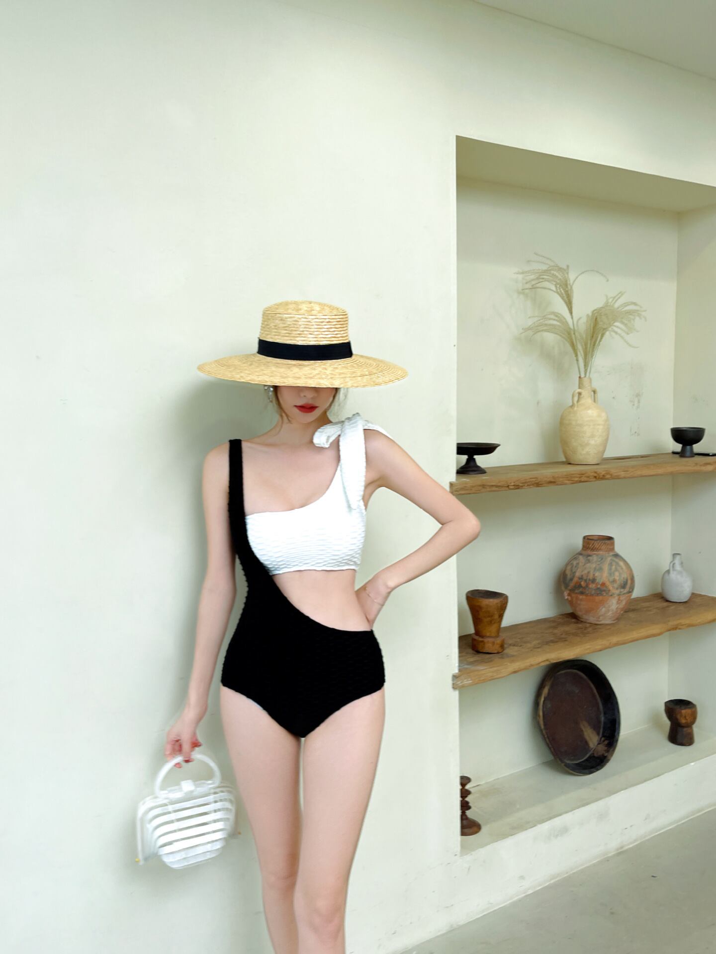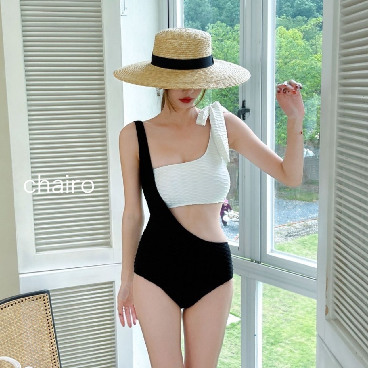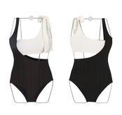 バイカラー リボン チューブトップ モノキニ ワンピース 水着 fly220916