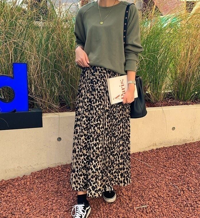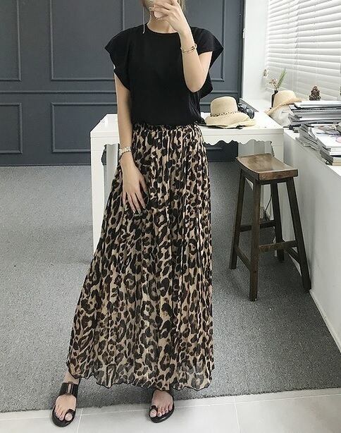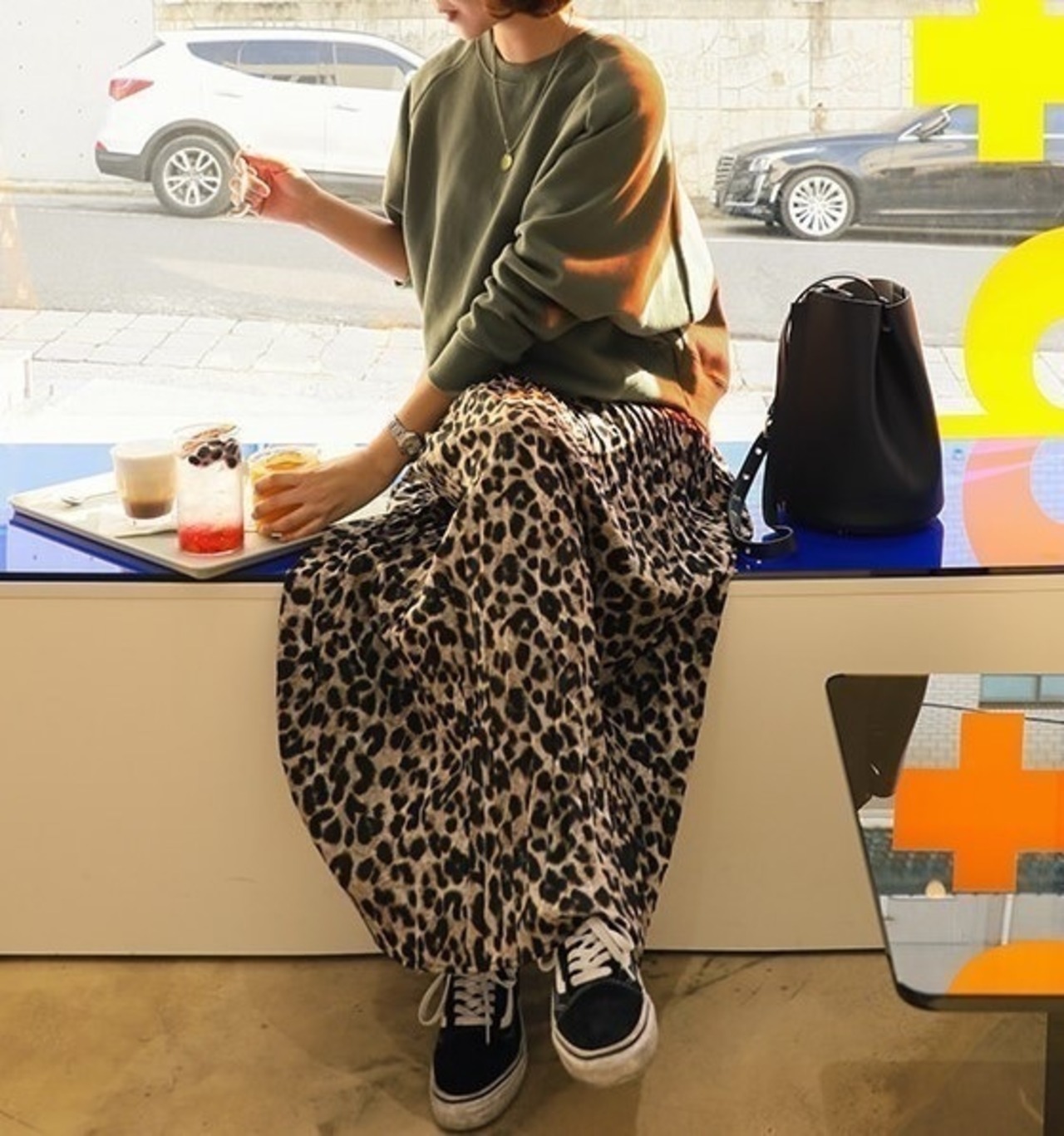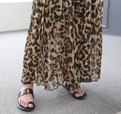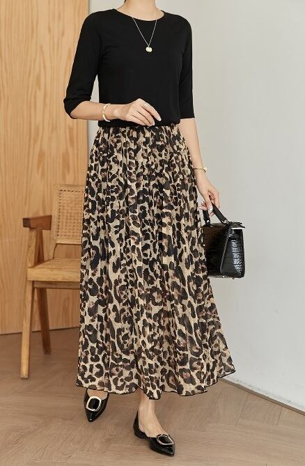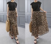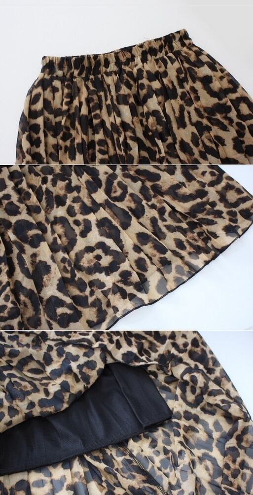 レオパード柄 シフォン プリーツ マキシ スカート ブラウン nin220922