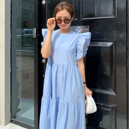 ワンピース ノースリーブ フリル袖 ティアード ロング fly220926