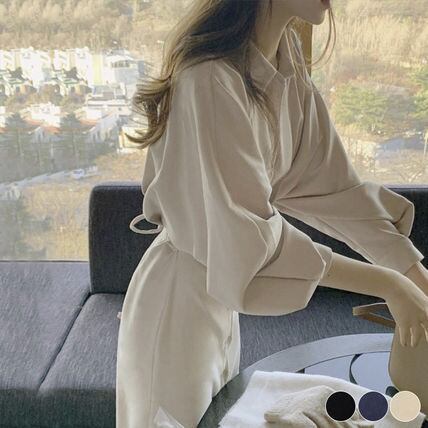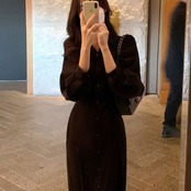 4色 ロング シャツワンピース ランタンスリーブ M074 net221001