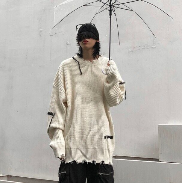 セーター ダメージ加工 クラッシュニット オーバーサイズ メンズ net221023 RA