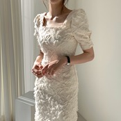 パーティードレス Aラインドレス スクエアネック ジャガード net221029