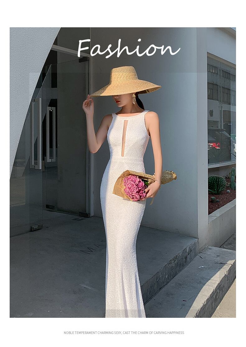 ドレス ロング丈 無地 ノースリーブ 上品 パーティー 結婚式 net221124
